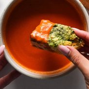 4. Serve: Serve tomato soup with garlic bread, grilled cheese, croutons, crackers, pesto, whatever you like!